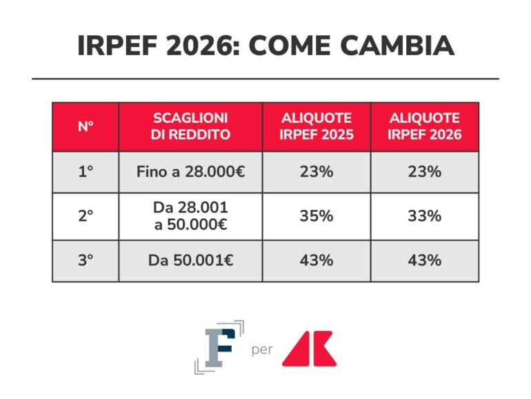 insert_link Economia IRPEF 2026: le novità della Manovra su calcolo e detrazioni L’IRPEF cambia ancora con le novità della Manovra 2026: l’aliquota che si applica al secondo scaglione (28.001-50.000 euro) si riduce e vengono tagliate le detrazioni fiscali per i più ricchi. È questa la formula individuata dal Governo per mettere in atto il taglio per il ceto medio, una promessa rimasta in stand by dallo scorso anno. Come cambia l’IRPEF 2026 con la nuova aliquota ridotta Anche nel 2026 l’IRPEF si calcolerà, come accade oggi, su tre scaglioni a cui si today31 Dicembre 2025